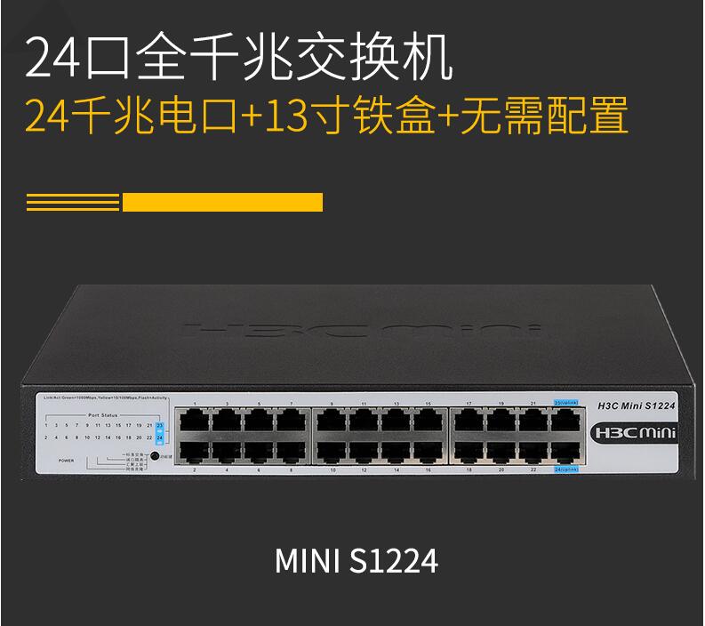 H3C華三Mini S1224 24口全千兆交換機(jī)企業(yè)級無管理非網(wǎng)管網(wǎng)絡(luò)交換器監(jiān)控防雷分線器替代S1324G